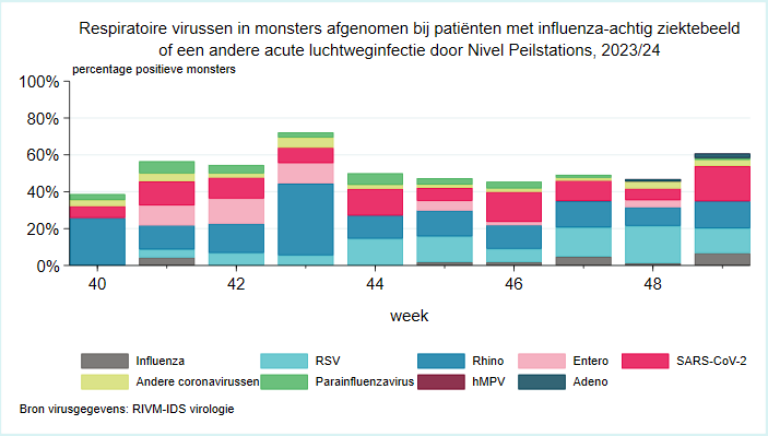 Met name de andere infecties beginnen op te vallen in de Nederlandse data, en ook in het buitenland. Zo vindt het Nivel aanzienlijk meer gevallen van longontsteking bij kinderen. Vorige week leken deze aantallen even af te nemen, maar nu nemen ze weer toe.