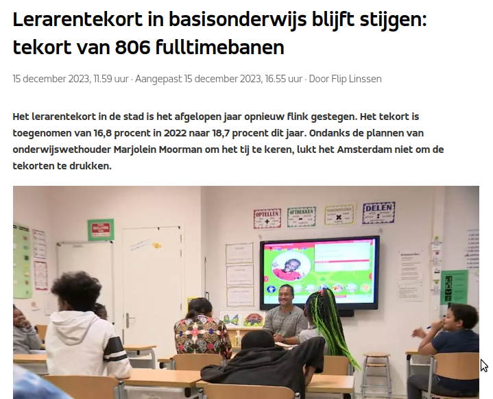 Ondertussen nemen de problemen op de arbeidsmarkt toe. Zo kunnen scholen niet genoeg docenten vinden. Een deel zal zijn uitgestroomd met long Covid, een deel zal iets anders gaan doen, omdat het risico te hoog werd, en velen zullen tijdelijk met ziekteverzuim zijn (door Covid, of andere luchtweginfecties). Naast dat lesuitval niet bevorderlijk is voor het leren van kinderen, komen ouders in de problemen met hun werk doordat hun kinderopvang wegvalt. Ooit zal de conclusie moeten gaan zijn dat de ventilatie op scholen verbeteren beter zal zijn.