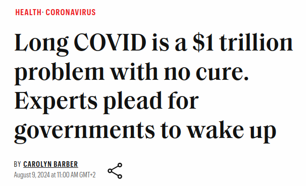 Veel van deze infecties veroorzaken gezondheidsschade. Dat kan in de vorm zijn van klachten, bekend als long Covid, maar ook in de vorm van een verhoogd risico op hart- en vaatziekten, neurologische aandoeningen, diabetes en auto-immuunziekten. Dit zorgt niet alleen voor veel menselijk leed, ook voor de economie zijn al deze zieken geen goed nieuws (tenzij je bijvoorbeeld diabetes medicijnen verkoopt). Een artikel dat deze week in Nature verscheen, schat de totale economische schade in op 1 triljoen Dollar (1% van de wereldeconomie). Ook het blad “Fortune” vraagt aandacht voor deze kosten en roept regeringen op “wakker te worden”.