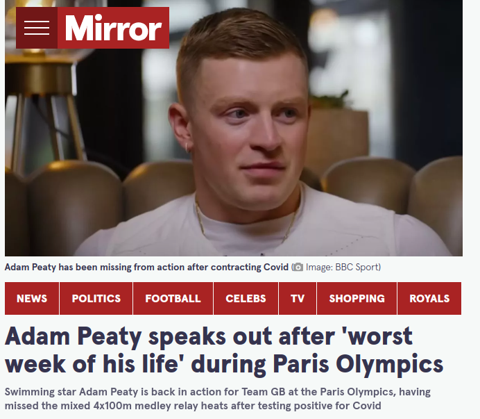 Met ongeveer 2% besmettingen is het niet vreemd dat Covid ook bij de Olympische spelen rond gaat. Het bekendste voorbeeld is de atleet Lyles die met Covid deel nam aan de 200 meter en daarna in een rolstoel het veld moest verlaten.