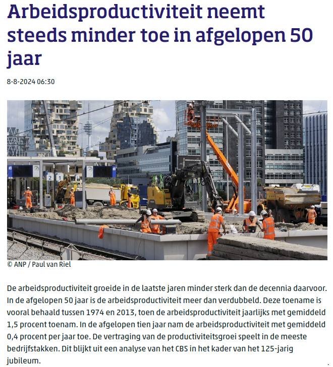 Ook zien we een terugloop in de arbeidsproductiviteit. Ook hierbij is niet goed onderzocht welk deel van de terugloop komt doordat herhaalde Covid voor langdurige gezondheidsklachten zorgt. Mensen zijn mogelijk nog wel aanwezig op het werk, maar zijn daar minder productief, omdat ze last hebben van geheugen- en concentratieproblemen, vermoeidheid, of pijn. Als ze met Covid naar het kantoor komen, dan bestaat ook nog het risico dat ze de andere werknemers besmetten, waardoor die ook minder productief raken.