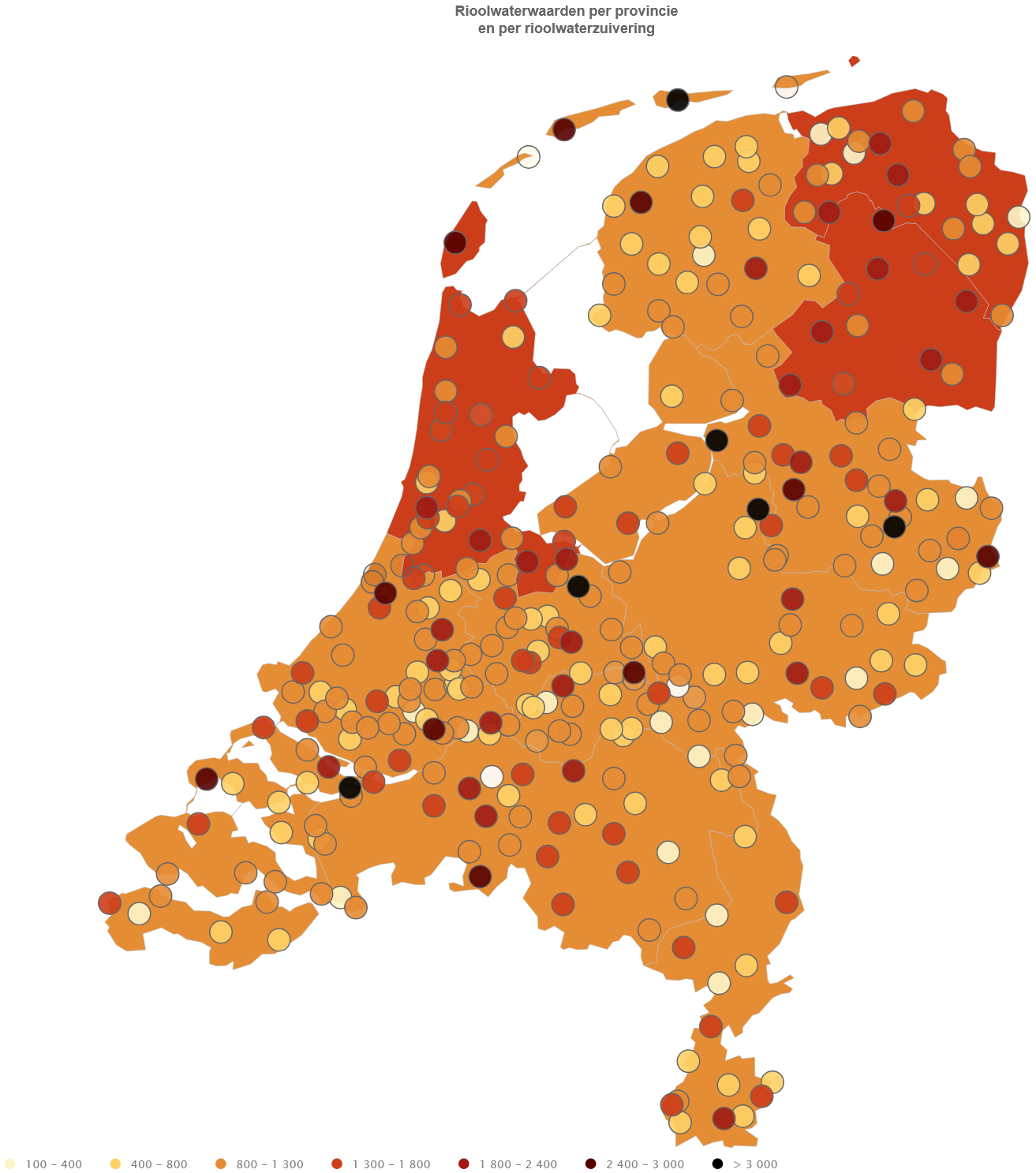 Op Corona Lokaal is ook de landelijke spreiding van het coronavirus te zien, over de provincies en over de afvalwaterstations. In alle provincies is het virusniveau nu boven 800, en in Noord-Holland, Groningen en Drenthe zelfs boven 1300. Deze situatie is bijzonder verontrustend.
