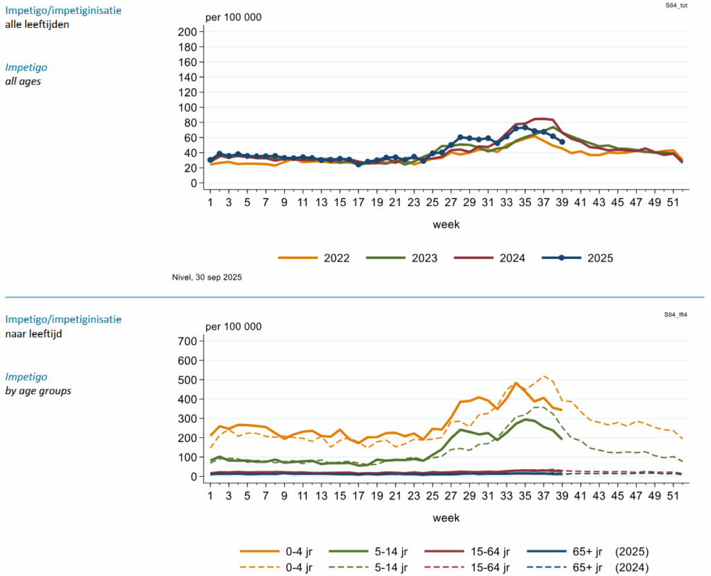 Het Nivel maakt in Surveillance Bulletin week 39 ook melding van verhoogde prevalentie van krentenbaard (impetigo) deze zomer. Deze infecties lijken zelfs elk volgend jaar vanaf het begin van de Covid19-pandemie erger te worden. Voor dit jaar is de infectieziekte gelukkig weer op zijn retour.
