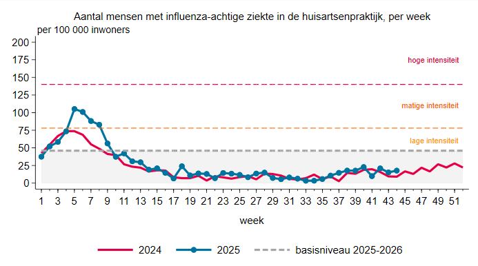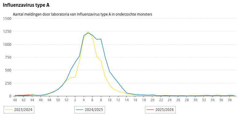 Bij het RIVM is momenteel nog geen duidelijke toename in griep te zien.
