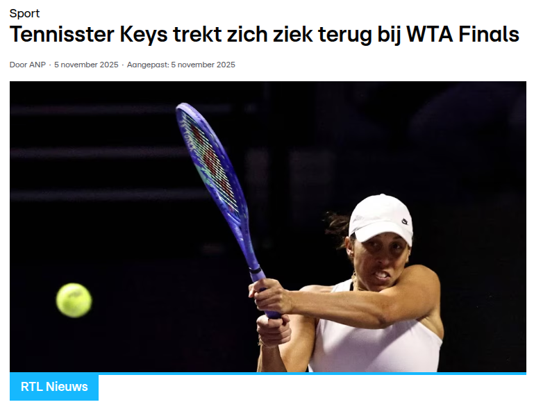 Afgelopen week was tennisster Madison Keys ziek (zonder nadere toelichting).