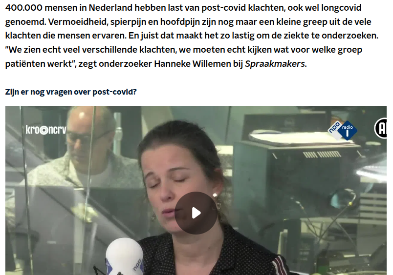 Bij NPO radio 1 werd long Covid besproken. Ook daar lijkt het idee te leven dat long Covid iets is wat vooral in de afgelopen jaren optrad, en nu niet meer. Misschien komt dat doordat de media nu alleen nog maar over “griep” en “stress” spreken?