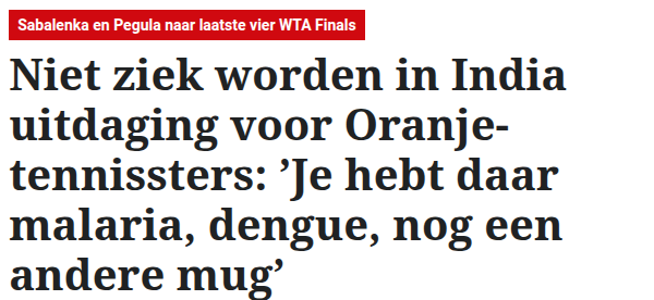 Nederlandse tennissters zeggen dat het moeilijk zal zijn niet ziek te worden, maar lijken alleen maar aan ziekten te denken die door muggen worden overgedragen, niet aan Covid, wat ze in het vliegtuig zullen inademen (of elders).