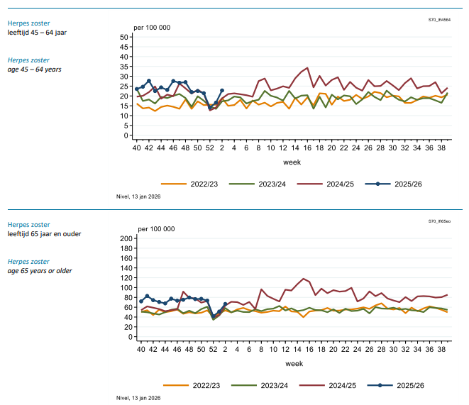 Gordelroos blijft relatief vaak voorkomen. Een mogelijke oorzaak is dat er relatief meer hogere leeftijden in de twee groepen voorkomen (leeftijd is een belangrijke risicofactor voor gordelroos), maar mogelijk zien we ook een gevolg van onder meer Covid (naast microplastics) op de werking van het immuunsysteem.