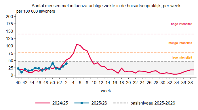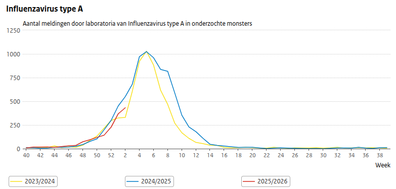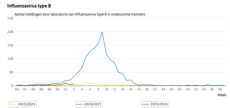 Vorig jaar was er een flinke griep B golf. Deze is dit jaar nog niet zichtbaar.