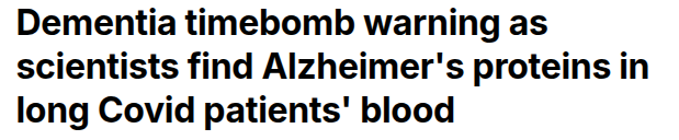 De Daily Mail kwam ook met een bericht dat in het bloed van long Covid patiënten het tau-eitwit wordt gevonden, wat ook gevonden wordt bij dementie. We wisten al dat Covid de kans op dementie met ongeveer 50% verhoogt.
